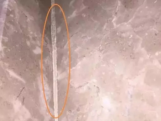 如果宽度有3~5mm,在处理时,将云石胶调至与石材颜色接近,或者有些石材上直接用白色的云石胶也可以。用批刀刮进缝隙处。接下来,有一个重要步骤,即在胶半干不干的时候,用刀片或铲刀将多余的胶沿缝隙刮掉,留下一条完整且较细的补胶线即可。残留部分则用钢丝棉擦拭清理干净。