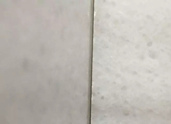 另一种是工厂没有做抛光,则可使用手提抛光机+干磨片,磨5~6个号,最后再用3000#或6000#的海绵抛收光。此处不需要做出晶面的品质,只需做出柔润、又光泽度的效果即可。